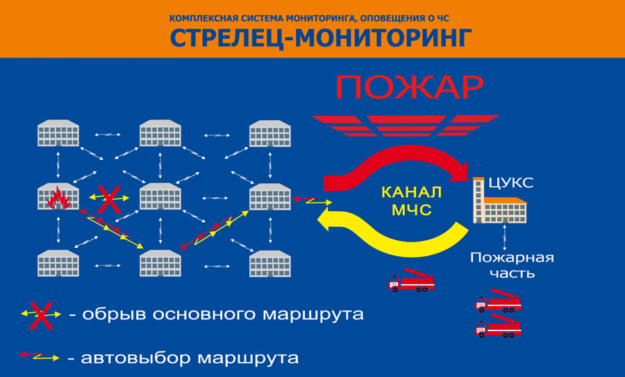 «Стрелец-Мониторинг» — программно-аппаратный комплекс (ПАК), система мониторинга, обработки и передачи данных о возгорании и динамике развития пожаров в сложных зданиях и сооружениях с массовым пребыванием людей, в том числе в высотных зданиях.