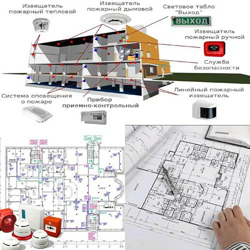 При проектировании учитывается, что система состоит из множества комплектующих: датчиков дыма и огня, шлейфов, звуковых извещателей, маркировки, табличек, средств пожаротушения. Каждая единица оборудования — одновременно и самостоятельный элемент, и часть общей схемы. Поэтому под конкретный объект проектируется индивидуальный набор оборудования.